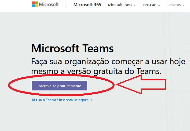 1. Acesse o site do Microsoft Teams e clique no botão "Inscreva-se gratuitamente";