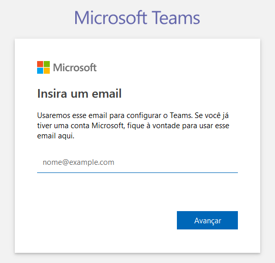 2. Insira um e-mail para cadastro na plataforma e clique no botão "Avançar";