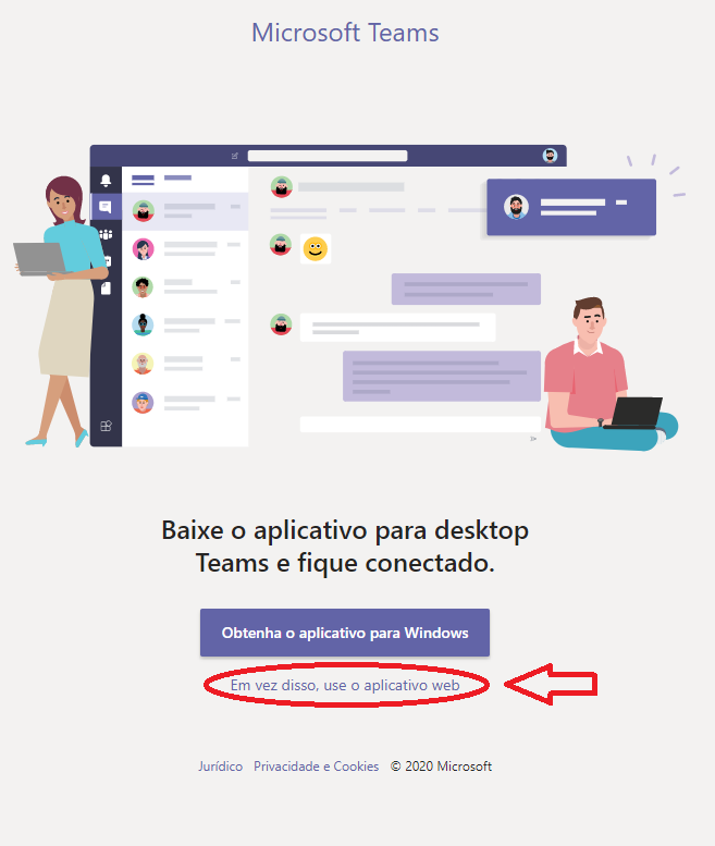 8. Na tela seguinte, clique no botão "Em vez disso, use o aplicativo Web";